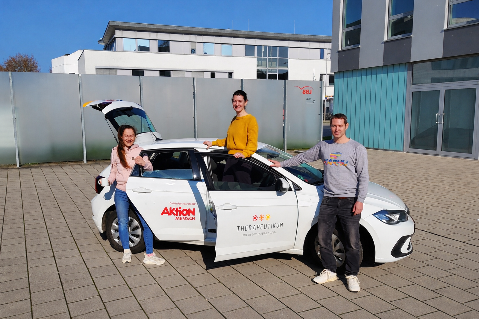 Das Junge Wohnen mit Tagesstruktur hat mit Unterstützung von Aktion Mensch e. V. ein neues Fahrzeug angeschafft. Der geförderte VW Polo wird am Standort Neckarsulm eingesetzt und soll die Mobilität sowie die organisatorische Flexibilität im Alltag verbessern.